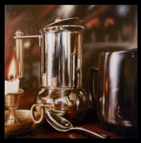 Ma création repose sur ma vision de l'instant Ce moment précieux ou l'objet et la lumière forment un équilibre dynamique. Par le biais de la peinture à l'huile, je revis ce moment lors de la création. Étant de caractère perfectioniste et possedant une maitrise de la technique, je pousse le détail jusqu'à l'hyperréalisme. Ce moment, cet instant ou la lumière caresse l'objet et lui donne vie, je le recrée et en tire une réelle satisfaction et ce processus est, pour moi, devenu aussi essentiel que la respiration.